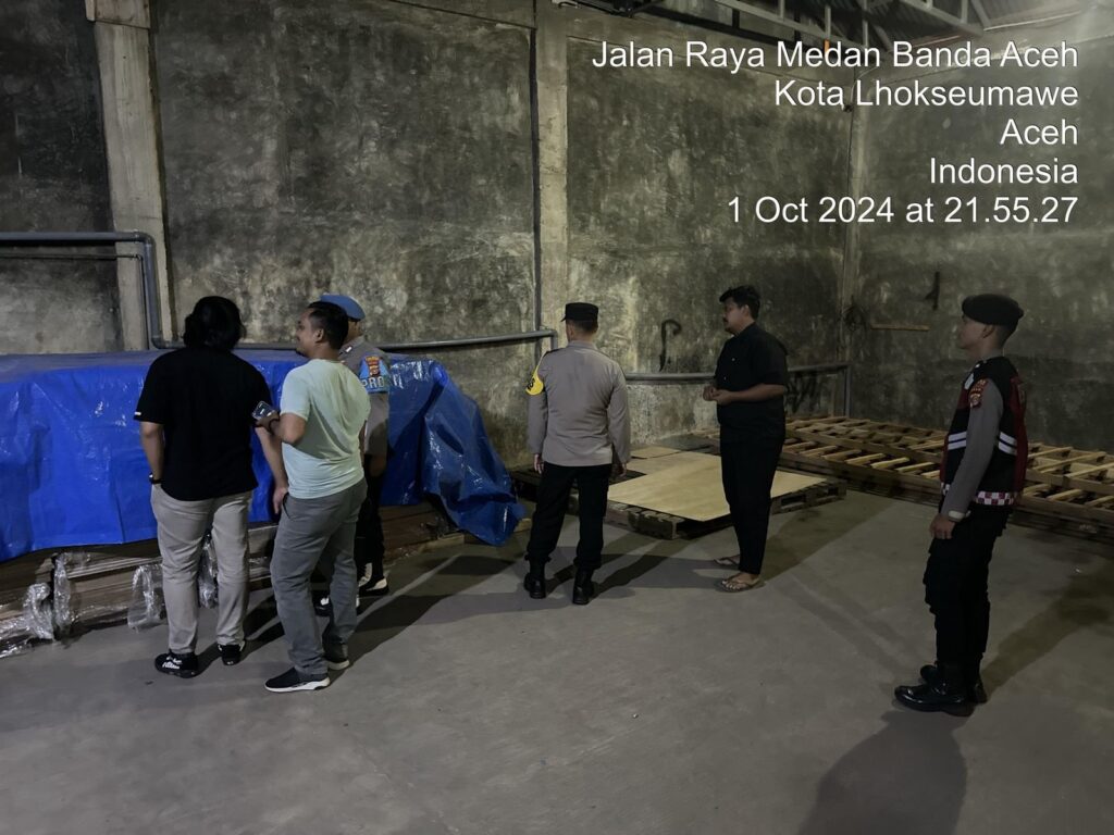LHOKSEUMAWE, – Dalam upaya menjaga keamanan dan kelancaran distribusi logistik Pemilukada personel Satuan Samapta Polres Lhokseumawe Polda Aceh melaksanakan pengamanan di gudang logistik Komisi Independensi Pemilihan (KIP) di Desa Mns Mesjid Kecamatan Muara Dua Kota Lhokseumawe. Selasa 01/10/2024.malam.