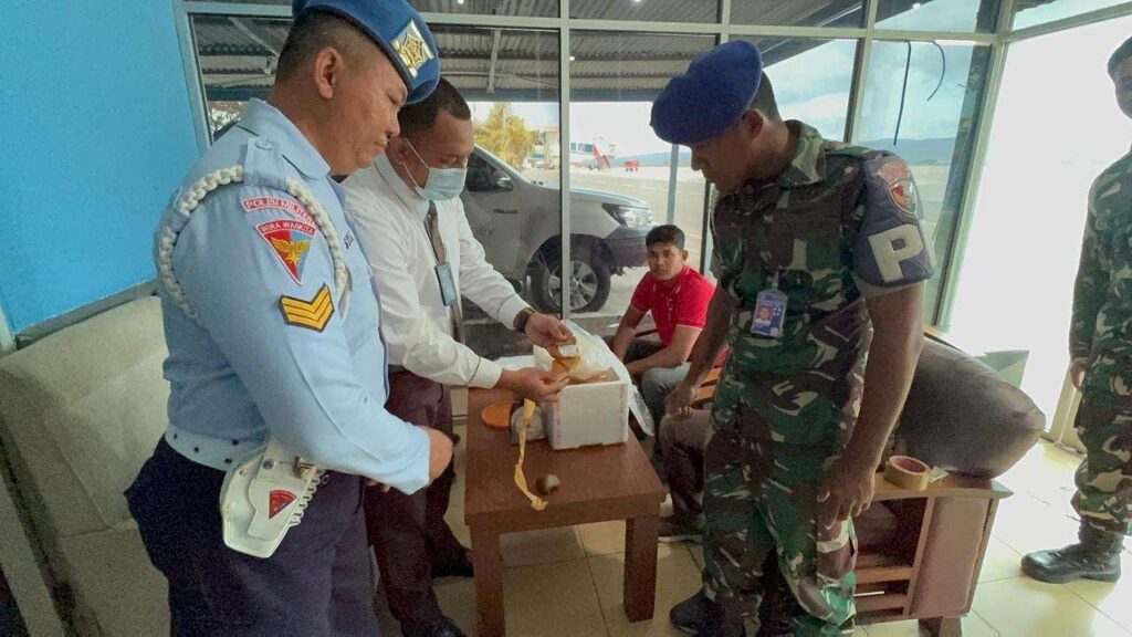 Dalam pemeriksaan rutin menggunakan mesin X-Ray, petugas Avsec melihat kecurigaan sebuah paket yang dibungkus dengan lakban coklat dan diselipkan di dalam box sterofoam berisi bumbu masak kelapa dan mangga. Selanjutnya, dilakukan pemeriksaan lebih mendalam dengan melibatkan personel TNI AU Lanud SIM yang sedang bertugas.