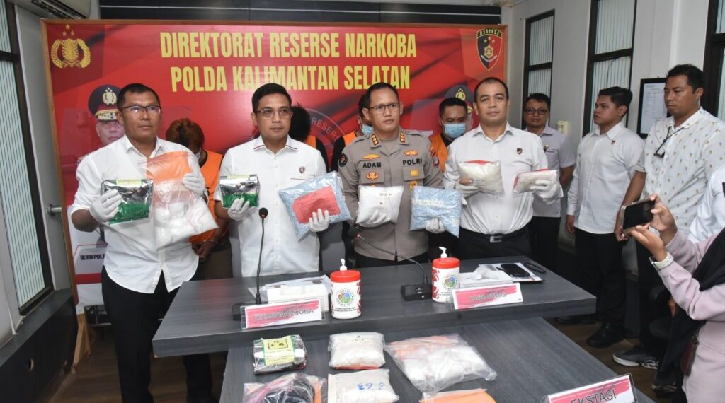 “Ada empat tersangka yang kami tangkap dengan total barang bukti sabu seberat 8.711,83 gram, ekstasi 10.049 butir, dan serbuk ekstasi 24,14 gram,” ujar Direktur Reserse Narkoba Polda Kalsel Kombes Kelana Jaya, Selasa (29/4/2025).