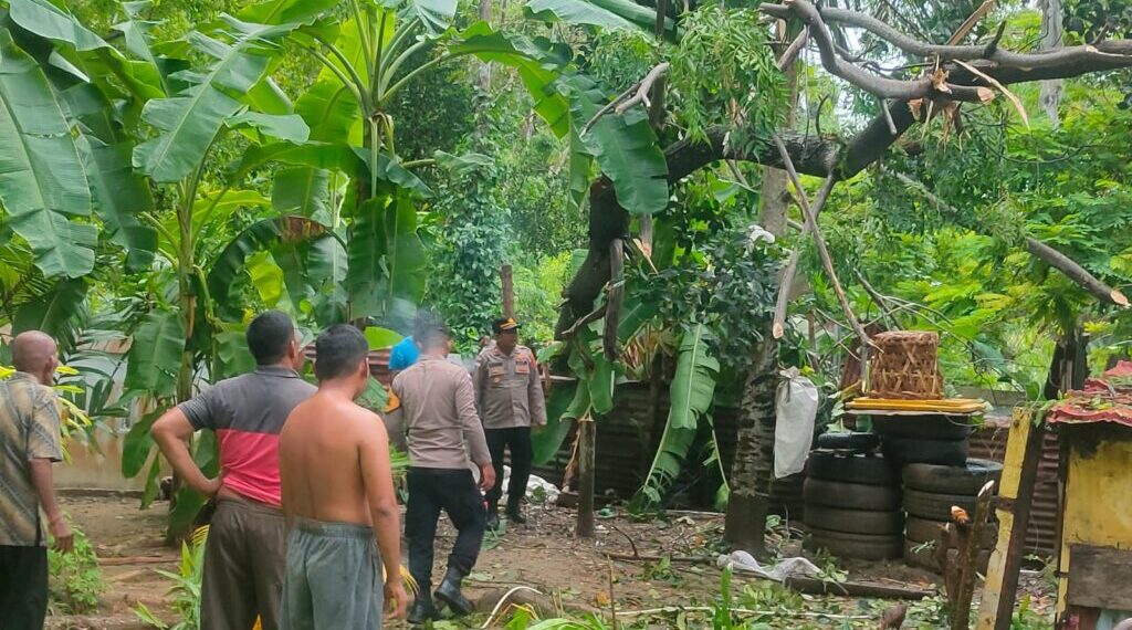 Lhokseumawe – Respons cepat ditunjukkan personel Polsek Muara Satu saat menangani peristiwa pohon tumbang yang menimpa bagian dapur rumah warga di Dusun II Tgk. Mon Carak, Desa Blang Panyang, Kecamatan Muara Satu, Kota Lhokseumawe, Kamis (9/4/2026).