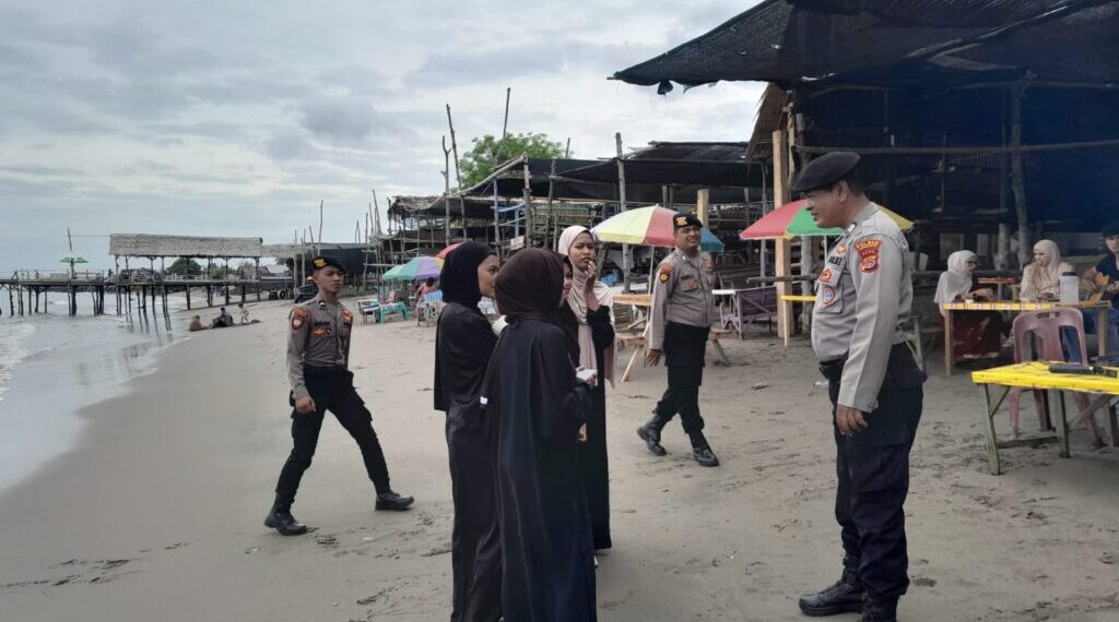 Lhokseumawe — Mentari pagi baru saja memancarkan sinarnya di Pantai Ujung Blang, Lhokseumawe. Suara deburan ombak bersahut-sahutan dengan keceriaan anak-anak yang bermain di bibir pantai. Di tengah suasana santai para wisatawan, tampak beberapa personel polisi berjaga, menyapa ramah pengunjung yang datang.