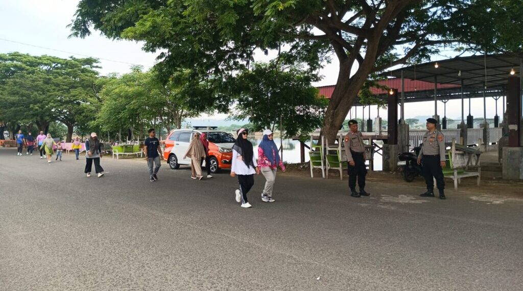 Lhokseumawe – Suasana akhir pekan di Waduk Pusong, Kecamatan Banda Sakti, Kota Lhokseumawe, tampak lebih aman dengan kehadiran personel Sat Pamobvit Polres Lhokseumawe yang melakukan patroli dan pengamanan, Minggu pagi (14/9/2025).