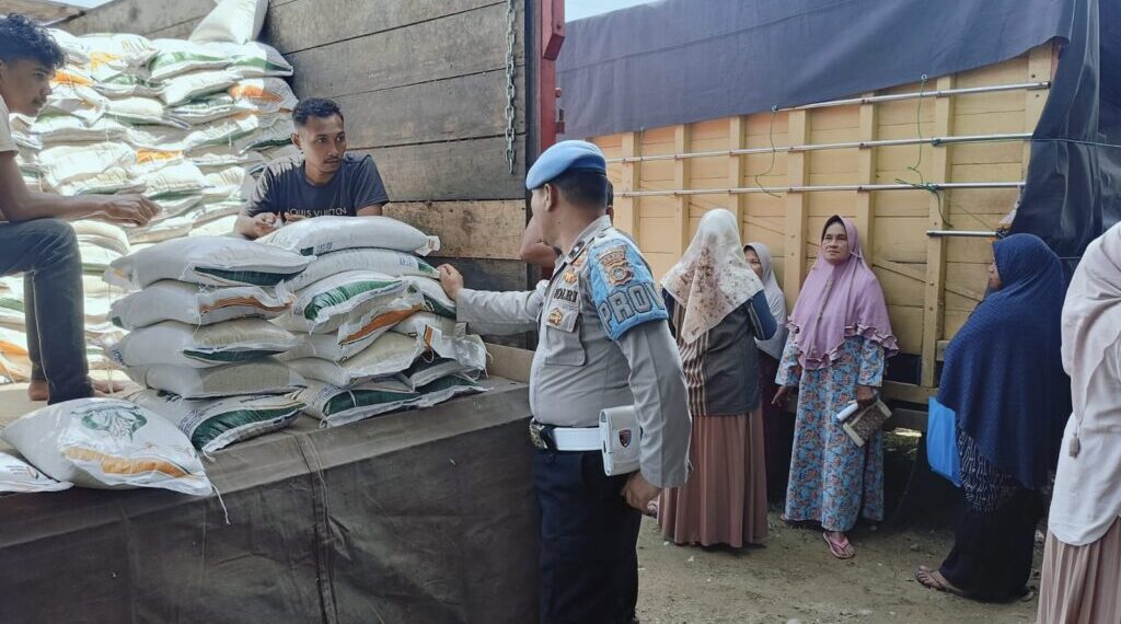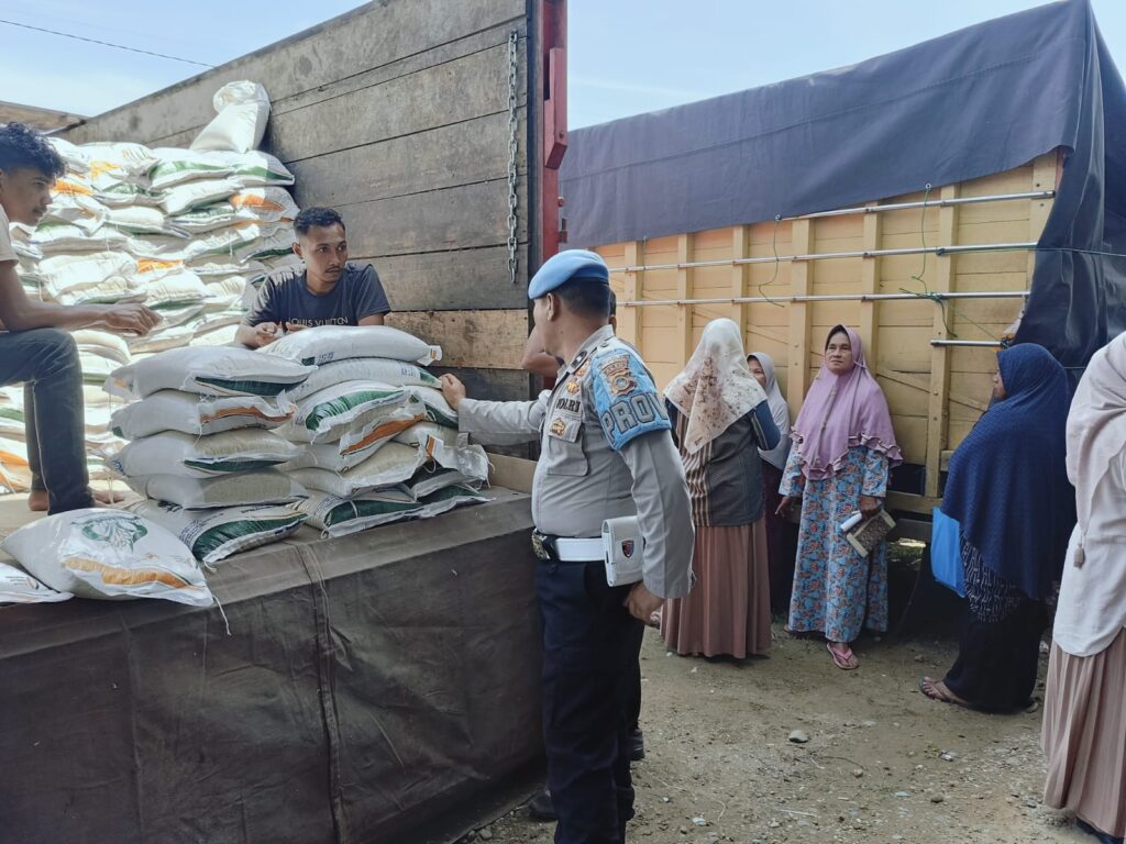 Aceh Utara – Guna memastikan kelancaran dan keamanan penyaluran bantuan pangan dari pemerintah, personel Polsek Kuta Makmur Polres Lhokseumawe melakukan pengamanan dan pengawalan ketat dalam kegiatan penyaluran beras 10 kg kepada masyarakat Kecamatan Kuta Makmur, Kabupaten Aceh Utara, Selasa (22/7/2025).