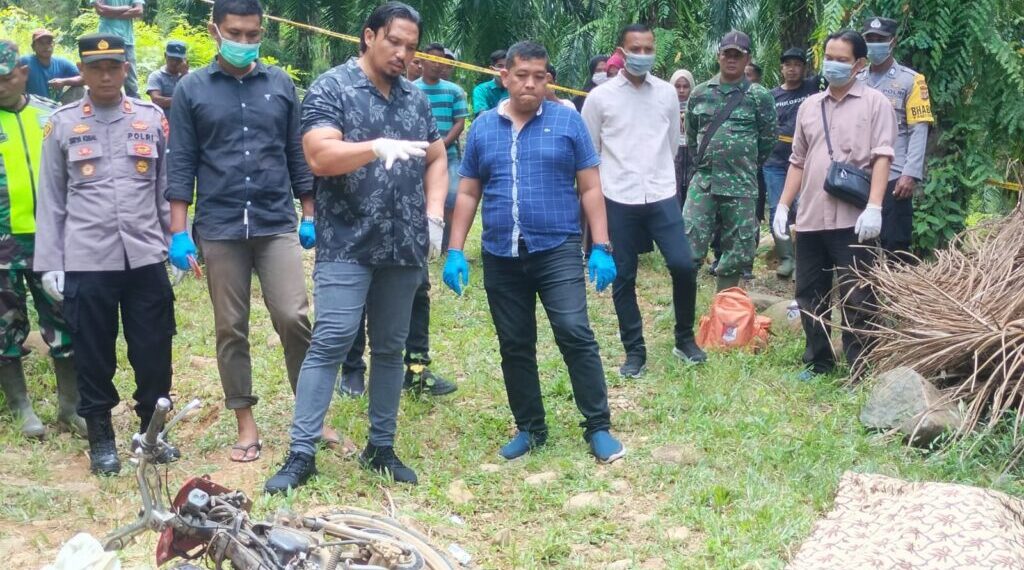 LHOKSEUMAWE – Polisi melakukan olah tempat kejadian perkara (TKP) atas penemuan seorang pria yang meninggal dunia di area perkebunan PT Satya Agung, Geuredong Pase, Aceh Utara, pada Kamis (26/9/2024) sekitar pukul 11.00 WIB.