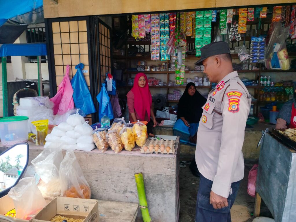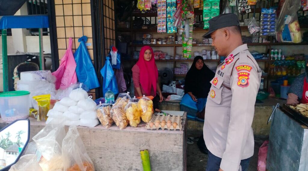 LHOKSEUMAWE – Guna menjaga stabilitas keamanan dan ketertiban masyarakat (guantibmas), personel Polsek Blang Mangat melaksanakan patroli dialogis sekaligus monitoring ketersediaan bahan kebutuhan pokok di Pasar Keude Punteut, Kecamatan Blang Mangat, Kota Lhokseumawe, Sabtu (3/1/2026).