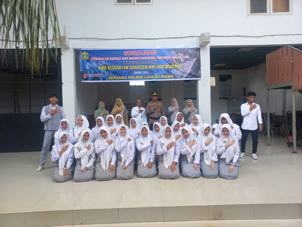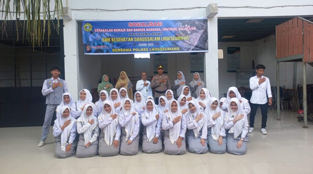 Lhokseumawe – Polres Lhokseumawe menggelar sosialisasi kamtibmas di SMKS Kesehatan Darussalam Kota Lhokseumawe, Senin pagi (19/5/2025), sebagai langkah pencegahan kenakalan remaja.