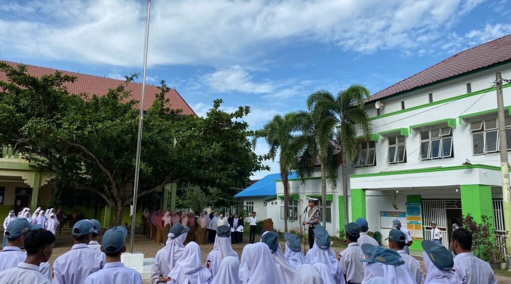 LHOKSEUMAWE – Unit Kamsel Satlantas Polres Lhokseumawe melaksanakan kegiatan “Polisi Saweu Sikula” di SMA Negeri 2 Lhokseumawe. Bripka Resky Adhitama Nst, S.Sos., M.H, bertindak sebagai pembina upacara di sekolah tersebut, senin (9/9/2024) pagi.