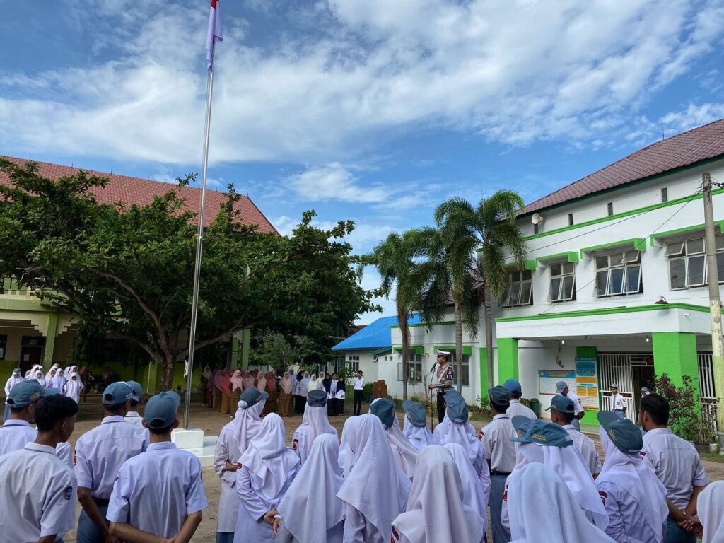 LHOKSEUMAWE – Unit Kamsel Satlantas Polres Lhokseumawe melaksanakan kegiatan “Polisi Saweu Sikula” di SMA Negeri 2 Lhokseumawe. Bripka Resky Adhitama Nst, S.Sos., M.H, bertindak sebagai pembina upacara di sekolah tersebut, senin (9/9/2024) pagi.