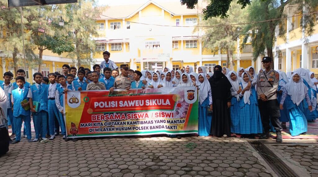Lhokseumawe – Dalam upaya meningkatkan kesadaran hukum dan mencegah kenakalan remaja, Polsek Banda Sakti melaksanakan program Polisi Saweu Sikula di SMP Negeri 2 Lhokseumawe, Gampong Hagu Selatan, Kecamatan Banda Sakti, Kota Lhokseumawe, Kamis (20/3/2025) pagi.