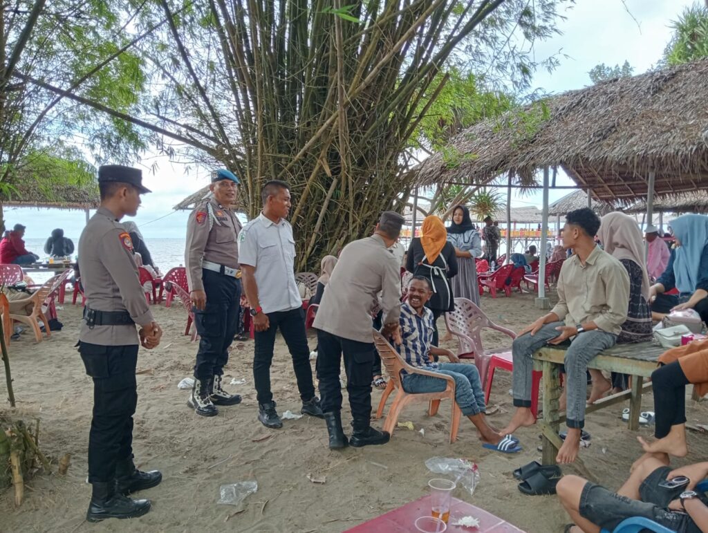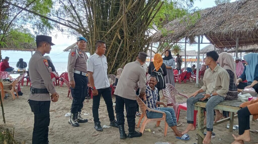 Aceh Utara – Guna menjaga kenyamanan masyarakat yang berlibur dan mencegah aksi premanisme serta gangguan kamtibmas lainnya, personel Polres Lhokseumawe bersama Polsek Syamtalira Bayu melaksanakan pengamanan di lokasi wisata Pantai Lancok, Desa Lancok, Kecamatan Syamtalira Bayu, Kabupaten Aceh Utara, Minggu (6/4/2025).