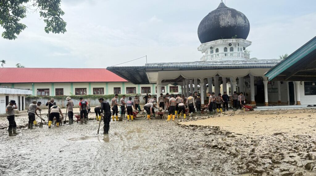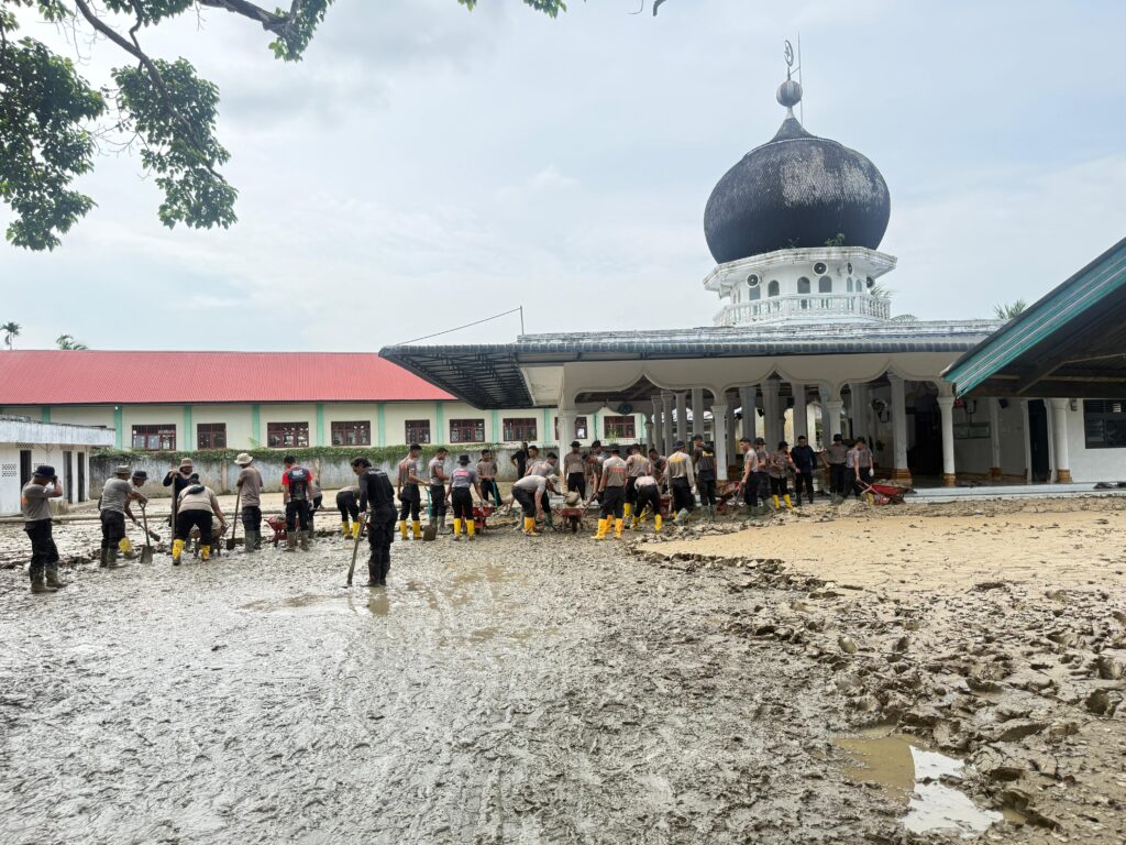 Kegiatan bakti sosial yang dimulai sekitar pukul 09.00 WIB tersebut dilakukan sebagai bentuk kepedulian Polri terhadap rumah ibadah yang terdampak banjir bandang pada 26 November 2025 lalu, sehingga tidak dapat digunakan untuk aktivitas ibadah akibat tertimbun lumpur dan sampah.