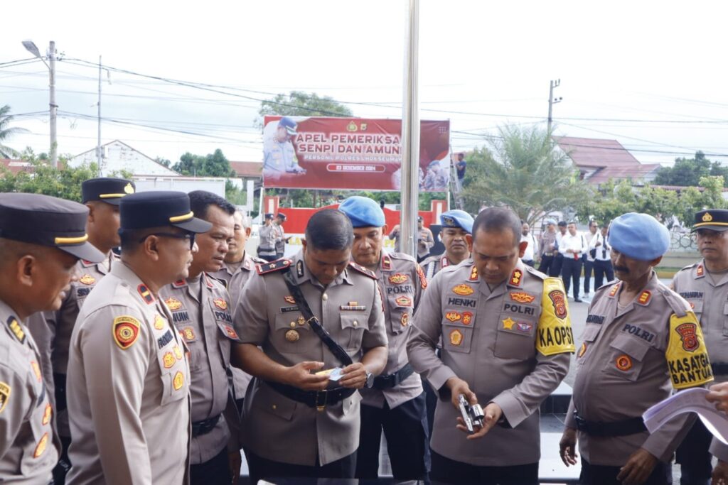 LHOKSEUMAWE – Polres Lhokseumawe menggelar apel pemeriksaan senjata api (senpi) dan amunisi personel di Lapangan Apel Mapolres Lhokseumawe, Senin (23/12/2024) pagi.