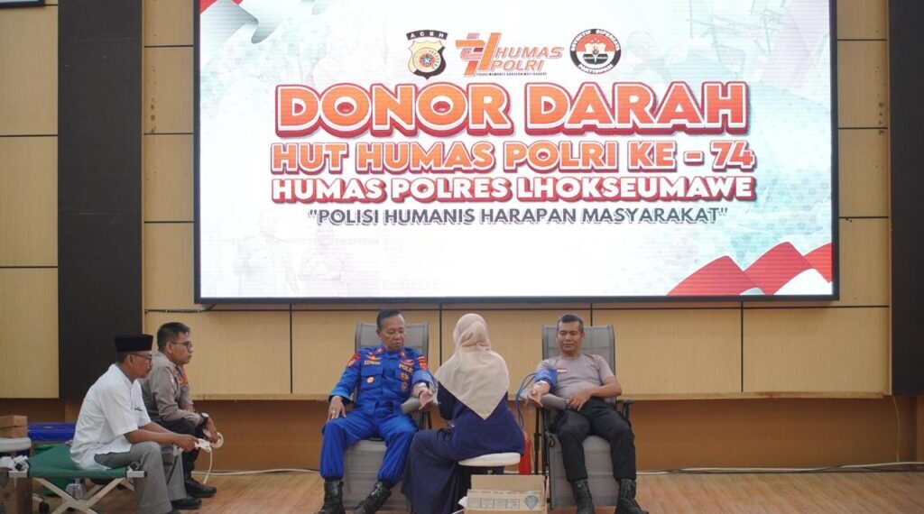 Kapolres Lhokseumawe AKBP Dr. Ahzan, S.H., S.I.K., M.S.M., M.H. melalui Kasi Humas Polres Lhokseumawe Salman Alfarasi, S.H., M.M. menyampaikan bahwa kegiatan donor darah ini merupakan bentuk kepedulian Polri terhadap sesama, sekaligus bagian dari semangat HUT Humas Polri ke-74. “Donor darah bukan sekadar kegiatan sosial, tetapi juga perwujudan nilai kemanusiaan dan solidaritas. Melalui kegiatan ini, Polri ingin menunjukkan bahwa kehadirannya di tengah masyarakat selalu membawa manfaat dan kebaikan,” ujarnya.
