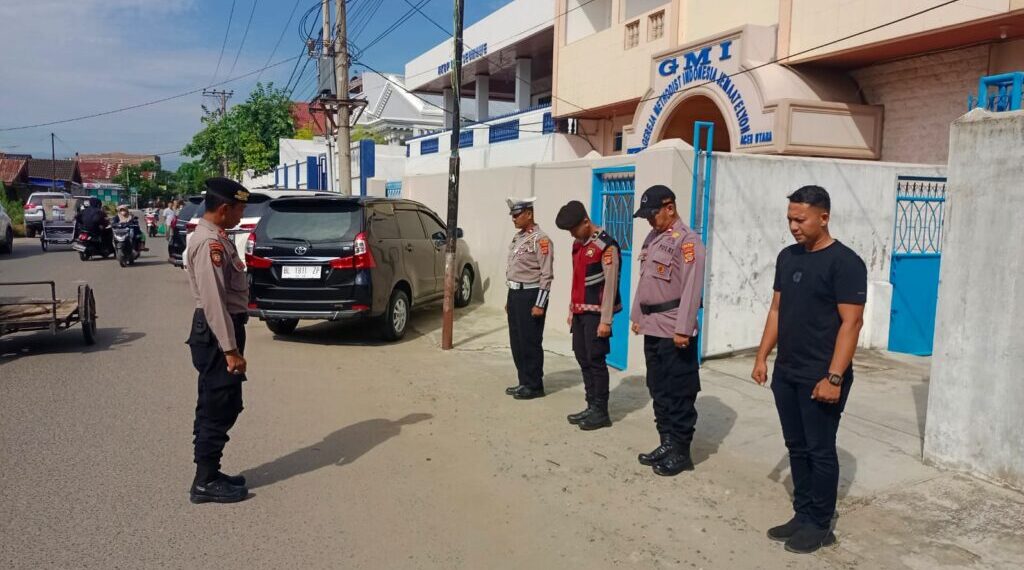 Lhokseumawe – Polres Lhokseumawe kerahkan sejumlah personil melaksanakan pengamanan secara ketat dan humanis pada pelaksanaan ibadah Kenaikan Tuhan Yesus Kristus di Gereja Methodist Indonesia (GMI) Jemaat Elyon, Gereja Katolik Santo Mikhael dan Huria Kristen Batak Protestan (HKBP) di Kota Lhokseumawe, Kamis (29/5/2025) pagi.