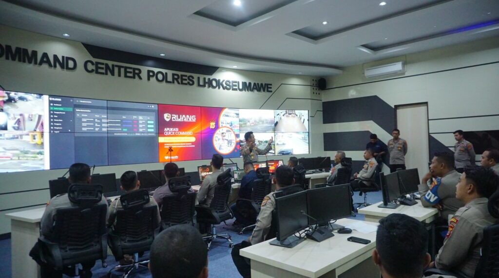 Lhokseumawe – Polres Lhokseumawe melaksanakan kegiatan sosialisasi dan pelatihan penggunaan aplikasi Rijang Quick Command kepada personel di Ruang Command Center Polres Lhokseumawe, Jumat siang (3/10/2025).