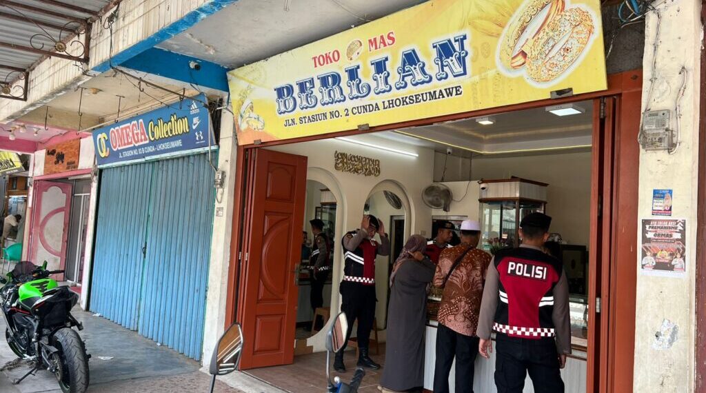 Lhokseumawe – Personel Satsamapta Polres Lhokseumawe gencar melaksanakan patroli Kota Presisi di kawasan pertokoan, khususnya di sekitar toko emas, Rabu (24/9/2025) sore. Langkah ini dilakukan sebagai upaya preventif untuk mencegah tindak kriminalitas dan menjaga keamanan pusat keramaian di wilayah hukum Polres Lhokseumawe.