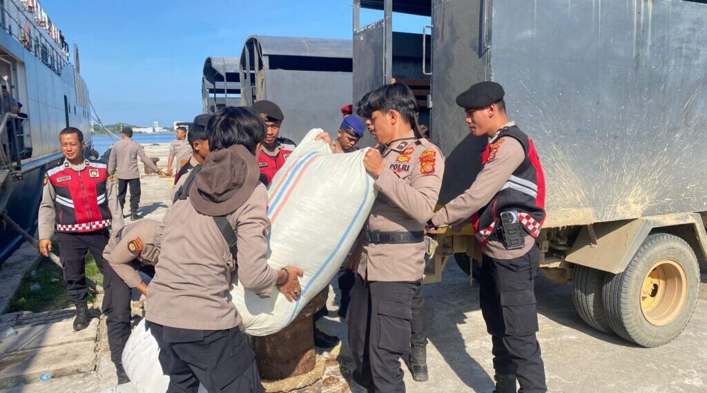 LHOKSEUMAWE – Dalam upaya mempercepat penyaluran bantuan kepada masyarakat terdampak banjir, jajaran Polres Lhokseumawe melalui Sat Samapta melakukan kegiatan penjemputan bantuan sosial dari Pemerintah Pusat di Pelabuhan Krueng Geukuh, Kecamatan Muara Satu, Kota Lhokseumawe, Kamis sore (4/12/2025).