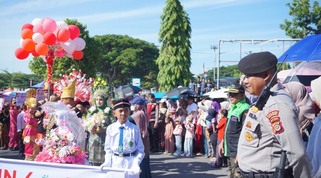 Selama kegiatan berlangsung, suasana terlihat kondusif. Aparat gabungan bersama panitia mengawal peserta mulai dari tingkat TK hingga SMA, serta kelompok masyarakat yang ikut menampilkan kreasi budaya dan kostum bertema kemerdekaan.