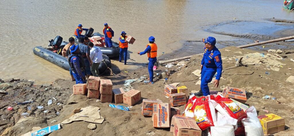 Tak hanya mengevakuasi orang, tim juga memindahkan tumpukan paket bantuan yang sempat tertahan di bantaran sungai. Seluruh logistik dikumpulkan dengan aman untuk kemudian dibawa kembali melanjutkan perjalanan oleh tim relawan.