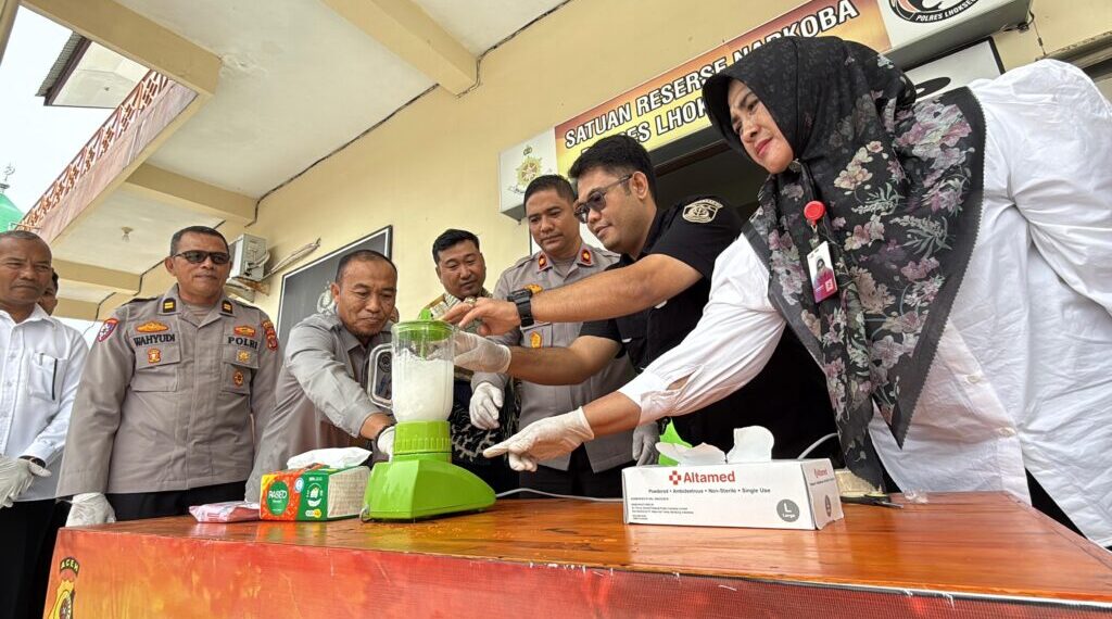 Lhokseumawe – Satuan Reserse Narkoba Polres Lhokseumawe memusnahkan barang bukti narkotika jenis sabu seberat 183,89 gram. Kegiatan berlangsung di lobi Sat Resnarkoba Polres Lhokseumawe, Rabu (17/9/2025) sekira pukul 10.30 WIB, disaksikan unsur kepolisian, kejaksaan, pengadilan, dinas kesehatan, dan penasihat hukum.