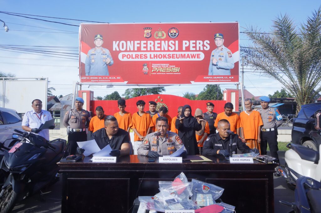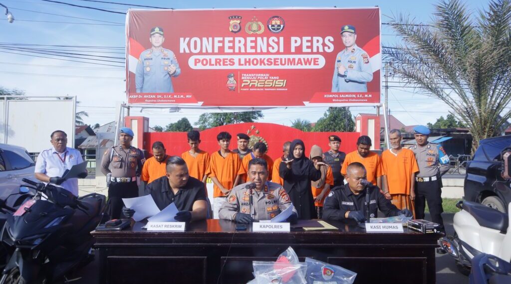 Konferensi pers ini dipimpin langsung oleh Kapolres Lhokseumawe AKBP Dr. Ahzan, S.H., S.I.K., M.S.M., M.H didampingi Kasat Reakrim Iptu Yudha Prasetya, S.H, Kasi Humas Salman Alfarasi, SH, M.M serta dihadiri oleh sejumlah awak media digelar di Mapolres Lhokseumawe, Selasa (20/5/2025) sore.