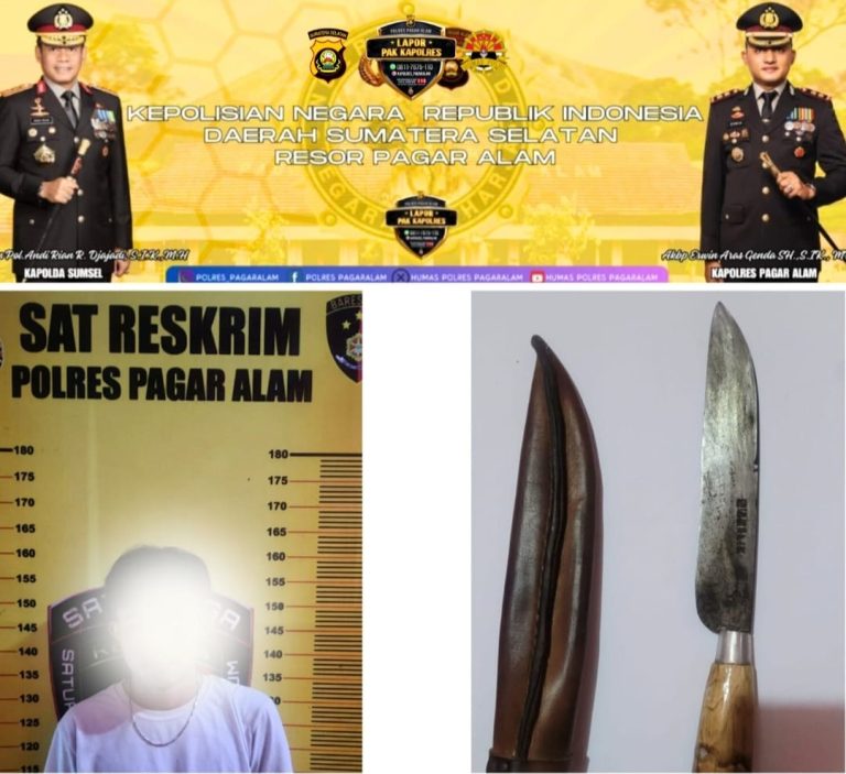 Kapolres Pagaralam melalui Kasat Reskrim menegaskan bahwa perbuatan tersebut jelas melanggar Pasal 2 ayat (1) UU Darurat No. 12 Tahun 1951, yang melarang kepemilikan dan membawa senjata tajam tanpa alasan yang sah. Senjata tajam jenis pisau yang dibawa tersangka telah diamankan sebagai barang bukti.