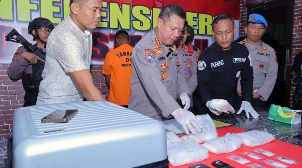 “Tim opsnal langsung melakukan penyergapan di area kedatangan Bandara. Saat digeledah, petugas menemukan enam bungkus besar sabu yang disembunyikan dalam koper berlapis plastik hitam di antara pakaian pelaku, seberat 3,5 Kilogram.Selain itu, diamankan pula dua unit handphone sebagai alat komunikasi pelaku,” jelasnya dikutip dari RRI, Kamis (7/8/25).