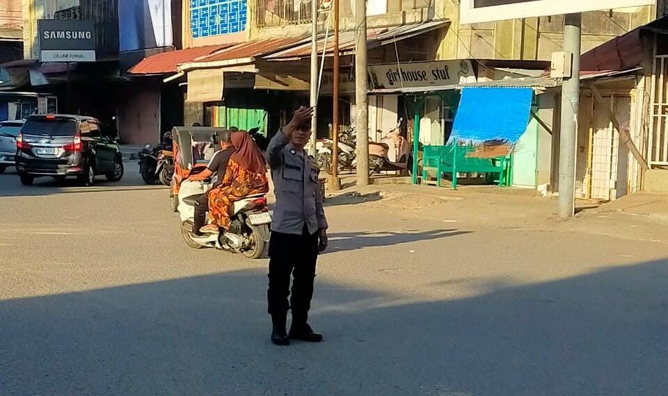 LHOKSEUMAWE – Personel Polsek Banda Sakti melaksanakan kegiatan pengamanan dan pengaturan arus lalu lintas di sejumlah titik rawan kemacetan di wilayah hukumnya, Minggu (8/3/2026) sore.