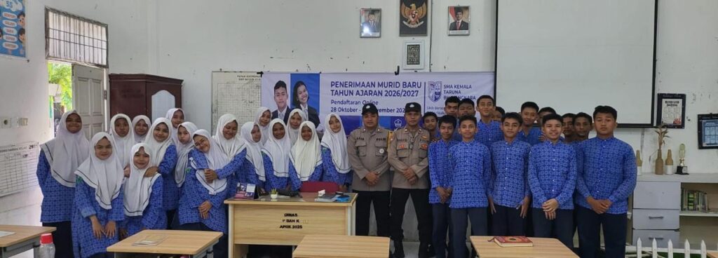 Lhokseumawe – Personel Polsek Banda Sakti melaksanakan kegiatan sosialisasi Seleksi Penerimaan Murid Baru (SPMB) SMA Kemala Taruna Bhayangkara Tahun Ajaran 2026/2027 di SMP Negeri 5 Lhokseumawe pada Senin (10/11/2025) sekitar pukul 09.30 WIB. Kegiatan ini merupakan bagian dari upaya Polri dalam mendukung informasi pendidikan lanjutan bagi para pelajar tingkat menengah pertama di wilayah hukum Polsek Banda Sakti.