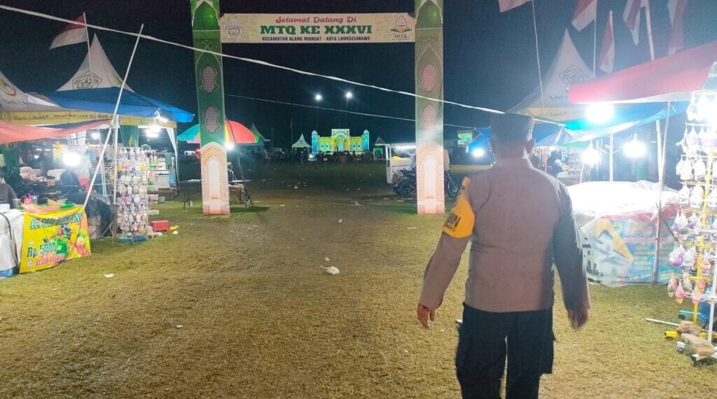 LHOKSEUMAWE – Personel Polsek Blang Mangat, mengerahkan tim untuk melakukan patroli dan pengamanan dalam rangka pelaksanaan Musabaqah Tilawatil Qur’an (MTQ) ke-XXXVII tingkat Kecamatan Blang Mangat, Rabu (02/09/2024) malam.