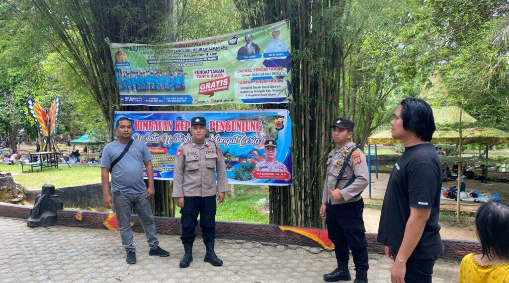 Lhokseumawe – Guna menjaga situasi keamanan dan ketertiban masyarakat (Kamtibmas) di wilayah hukum Kecamatan Blang Mangat, personel Polsek Blang Mangat melaksanakan kegiatan patroli dan pengecekan sarana prasarana di objek wisata Waterboom Mangat Ceria, Desa Blang Buloh, Senin (7/4/2025).