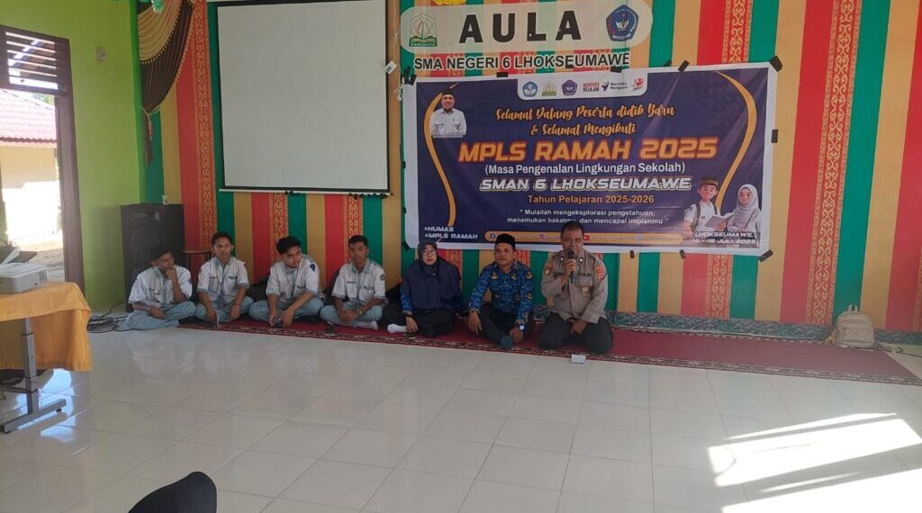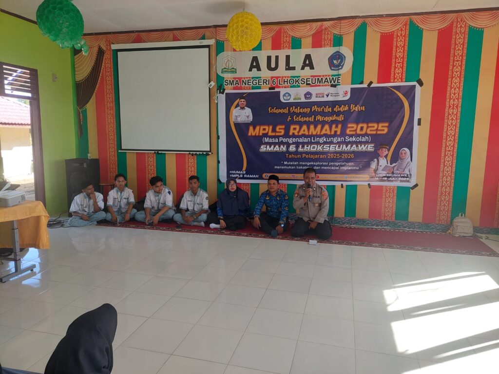 Sementara itu, kegiatan ini juga dihadiri oleh Kepala SMA 6 Lhokseumawe Faisal, S.Pd., M.Pd., para dewan guru serta sekitar 120 siswa baru yang mengikuti kegiatan dengan antusias.