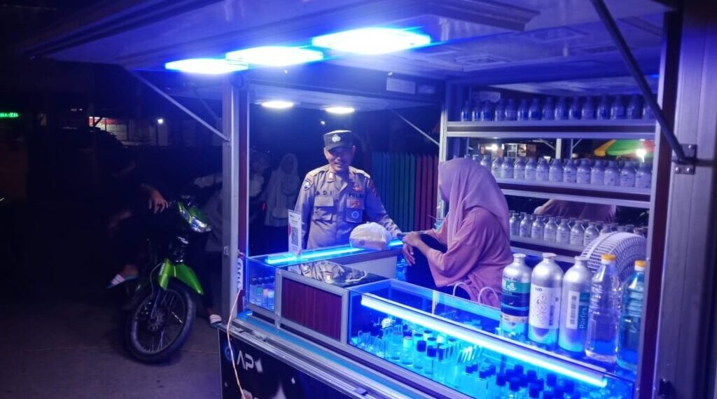 ACEH UTARA Personil Polsek Dewantara Polres Lhokseumawe Polda Aceh melakukan patroli Dialogis di pusat keramaian untuk mencegah terjadinya gangguan keamanan dan ketertiban masyarakat (Guantibmas) di wilayah hukum Dewantara Kamis 06/09/2024 . Malam.
