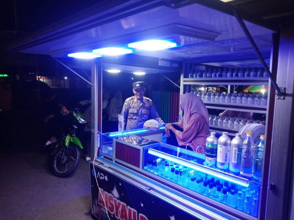 ACEH UTARA Personil Polsek Dewantara Polres Lhokseumawe Polda Aceh melakukan patroli Dialogis di pusat keramaian untuk mencegah terjadinya gangguan keamanan dan ketertiban masyarakat (Guantibmas) di wilayah hukum Dewantara Kamis 06/09/2024 . Malam.