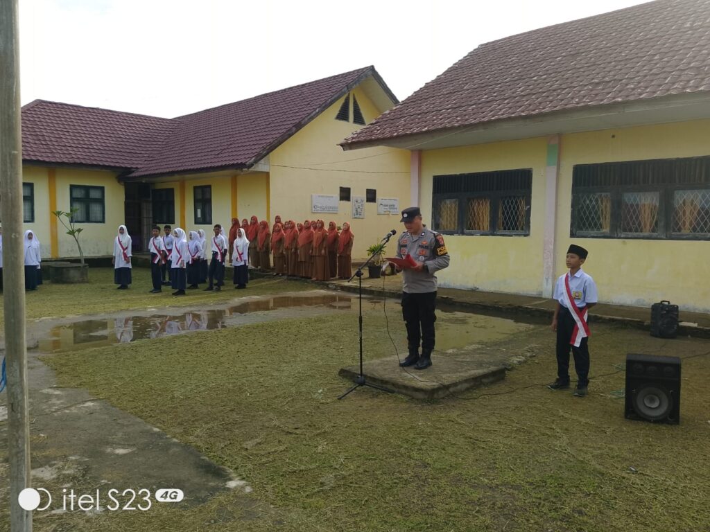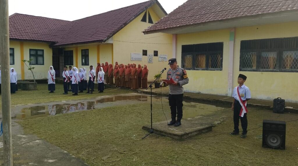 Lhokseumawe – Dalam rangka menanamkan disiplin dan kesadaran hukum sejak dini, personel Polsek Meurah Mulia Polres Lhokseumawe melaksanakan kegiatan Polisi Saweu Sikula dengan menjadi pembina upacara bendera di SMP Negeri 1 Meurah Mulia, Kabupaten Aceh Utara, Senin (3/11/2025).