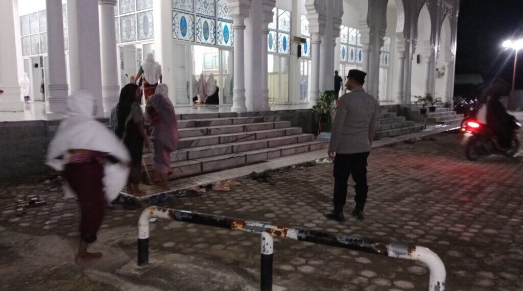 Aceh Utara – Guna memastikan keamanan dan kenyamanan jamaah dalam menjalankan ibadah di bulan suci Ramadan, personel Polsek Meurah Mulia melaksanakan pengamanan salat tarawih di Masjid Raudhatul Amal, Gampong Paya Itek, Kecamatan Meurah Mulia, Kabupaten Aceh Utara, Jumat (21/3/2025) malam.