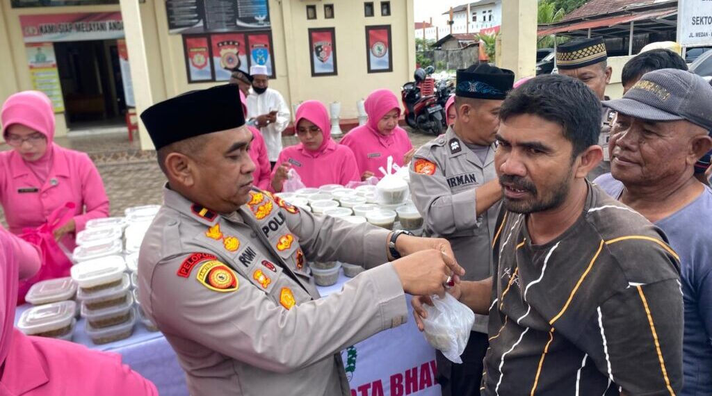 Lhokseumawe – Personel Polsek Muara Dua bersama Bhayangkari Ranting Muara Dua menggelar aksi sosial dengan membagikan 600 paket takjil kepada masyarakat dan pengguna jalan yang melintas di depan Mapolsek Muara Dua, Jalan Medan-Banda Aceh, Desa Meunasah Mee, Kecamatan Muara Dua, Kota Lhokseumawe, Jumat (14/3/2025) sore.