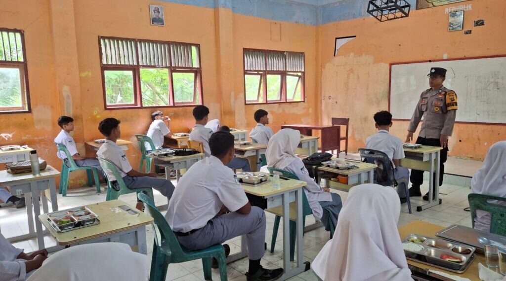 Lhokseumawe – Personel Polsek Muara Dua melakukan monitoring terhadap penyaluran Program Makan Bergizi Gratis (MBG) dari Badan Gizi Nasional (BGN) kepada para siswa dan siswi di sejumlah sekolah dalam wilayah Kecamatan Muara Dua, Kota Lhokseumawe, Selasa (27/5/2025).