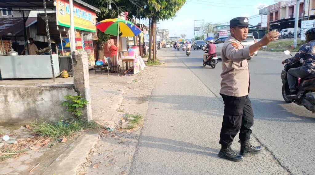 LHOKSEUMAWE – Dalam rangka menjaga ketertiban dan kelancaran arus lalu lintas menjelang waktu berbuka puasa, personel Polsek Muara Dua melaksanakan kegiatan pengamanan dan pengaturan lalu lintas di sejumlah titik rawan kemacetan, Minggu (1/3/2026) sore.