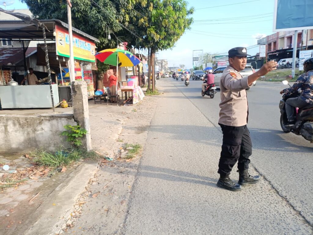 LHOKSEUMAWE – Dalam rangka menjaga ketertiban dan kelancaran arus lalu lintas menjelang waktu berbuka puasa, personel Polsek Muara Dua melaksanakan kegiatan pengamanan dan pengaturan lalu lintas di sejumlah titik rawan kemacetan, Minggu (1/3/2026) sore.