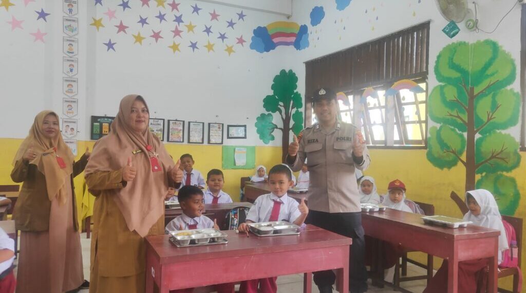 Lhokseumawe – Personel Polsek Muara Dua melaksanakan monitoring Program Makan Bergizi Gratis (MBG) dari Badan Gizi Nasional (BGN) yang didistribusikan kepada siswa-siswi sekolah serta kelompok B3 (balita, ibu hamil, dan ibu menyusui) di wilayah Kecamatan Muara Dua, Kota Lhokseumawe, Senin (29/9/2025) pagi.