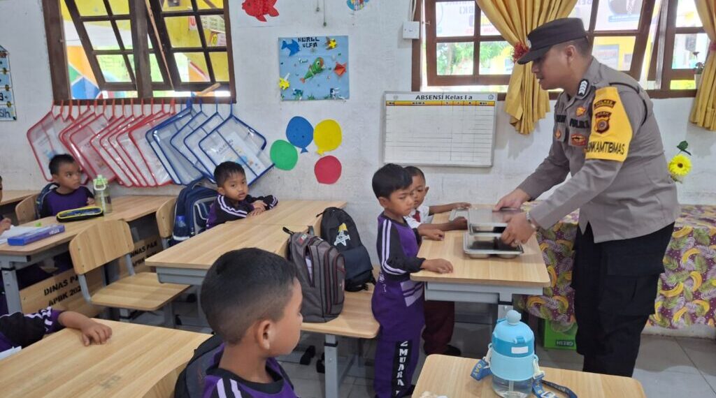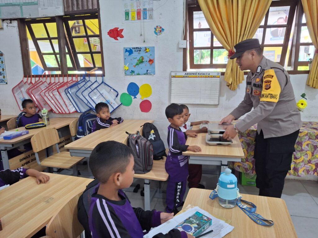 Lhokseumawe – Personel Polsek Muara Dua, Polres Lhokseumawe, memonitor Program Makan Bergizi Gratis (MBG) dari Badan Gizi Nasional (BGN) yang disalurkan kepada siswa sekolah serta kelompok B3 (balita, ibu hamil, dan ibu menyusui) di Kecamatan Muara Dua, Senin (22/9/2025).
