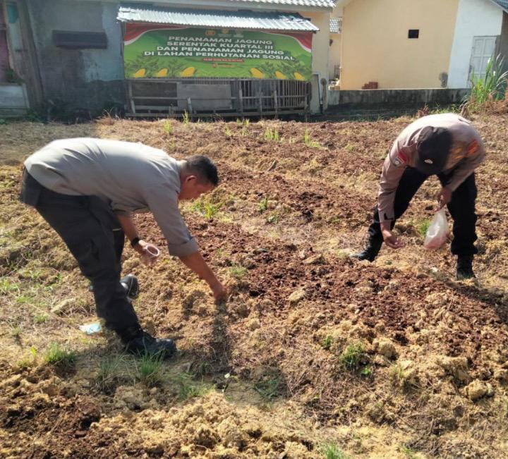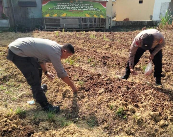 Lhokseumawe – Dalam rangka mendukung program Asta Cita pemerintah khususnya di bidang ketahanan pangan, Polsek Muara Dua Polres Lhokseumawe bersama unsur Muspika melaksanakan penanaman perdana jagung serentak Kuartal III di Desa Paloh Batee, Kecamatan Muara Dua, Kota Lhokseumawe, Rabu siang (09/07/2025).