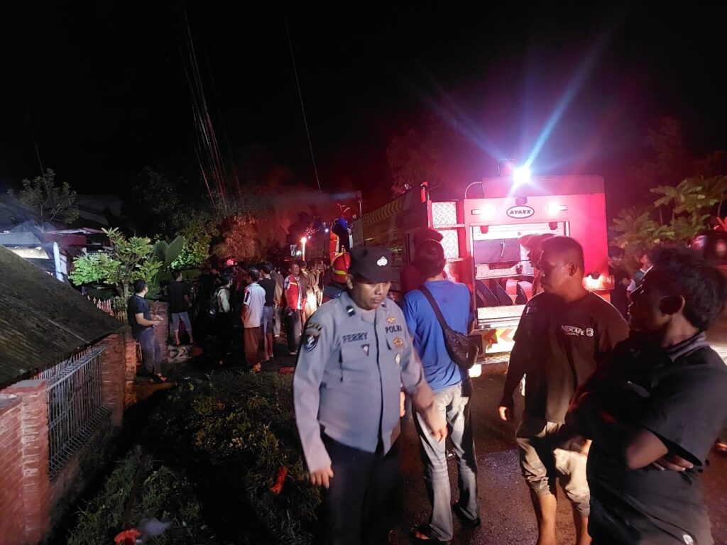 Lhokseumawe – Personel Polsek Muara Satu, Polres Lhokseumawe, bergerak cepat mengamankan lokasi kebakaran sebuah rumah permanen yang dijadikan kos-kosan mahasiswa di Kompleks BTN Dusun Tgk Seumatang, Desa Padang Sakti, Kecamatan Muara Satu, Minggu (29/6/2025) dini hari.