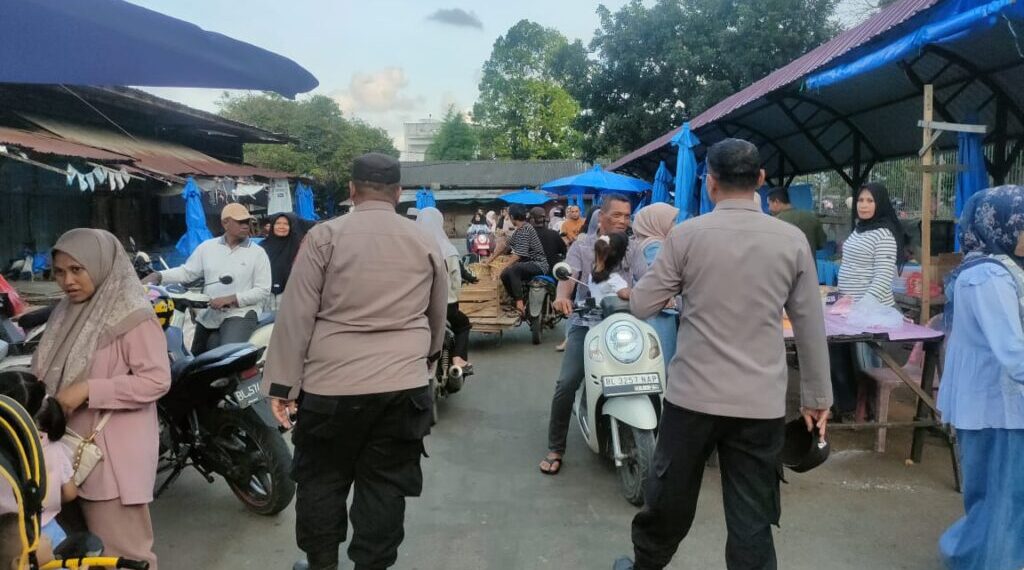 Lhokseumawe – Dalam rangka mengantisipasi terjadinya gangguan keamanan dan ketertiban masyarakat (Guantibmas) menjelang waktu berbuka puasa di bulan suci Ramadan, personel Polsek Muara Satu, jajaran Polres Lhokseumawe, melaksanakan kegiatan patroli pasar di kawasan Pasar Batuphat Timur, Minggu (22/2/2026) sekira pukul 17.00 WIB hingga selesai.