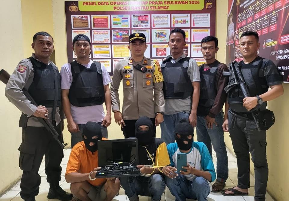 Aceh Timur – Polsek Rantau Selamat, Polres Langsa, berhasil mengungkap kasus pencurian dengan pemberatan serta tindak pidana pertolongan jahat dan penadahan. Tiga pelaku berinisial MZ (36), SB (30), dan RMS (27) diamankan bersama barang bukti berupa ponsel, laptop, dan sepeda motor hasil kejahatan.