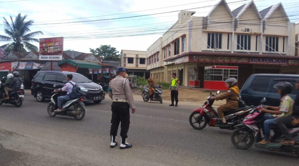 LHOKSEUMAWE, Dalam upaya mengantisipasi kemacetan lalu lintas di simpang keude Pasar Geudong Kec. Samudera, Anggota Polsek Samudera Polres Lhokseumawe Polda Aceh melaksanakan kegiatan Strong Point pada pagi hari. Kegiatan ini bertujuan untuk memastikan arus lalu lintas berjalan lancar, terutama pada jam-jam sibuk di pagi hari., Kamis, 17/10/2024 Pagi.