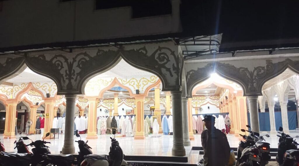 Aceh Utara – Untuk memastikan kelancaran ibadah di bulan Ramadan, personel Polsek Sawang melaksanakan pengamanan shalat Isya dan tarawih di Masjid Darul Ulya, Desa Keude Sawang, Kecamatan Sawang, Aceh Utara, Rabu (26/3/2025) malam.