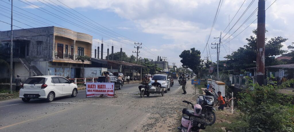 Aceh Utara — Kepolisian Sektor (Polsek) Syamtalira Bayu mengimbau seluruh pengguna jalan agar meningkatkan kewaspadaan saat melintasi jembatan rusak di jalur nasional tepatnya di depan UPTD Puskesmas Kecamatan Syamtalira Bayu, Kabupaten Aceh Utara, Rabu (24/12/2025).