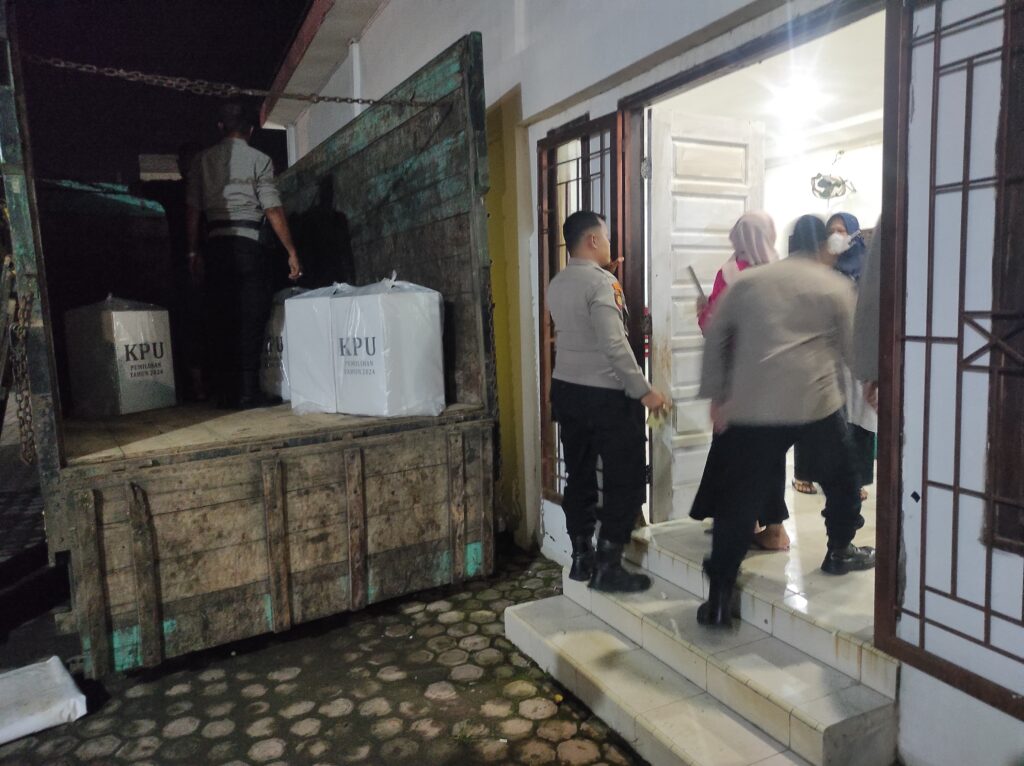 Aceh Utara – Polsek Syamtalira Bayu bersama personel Koramil 05 Syamtalira Bayu melaksanakan pengamanan dan pengawalan logistik Pemilihan Kepala Daerah (Pilkada) dari Sekretariat PPK Syamtalira Bayu menuju Gudang KIP Aceh Utara, Sabtu (30/11/2024) dini hari.
